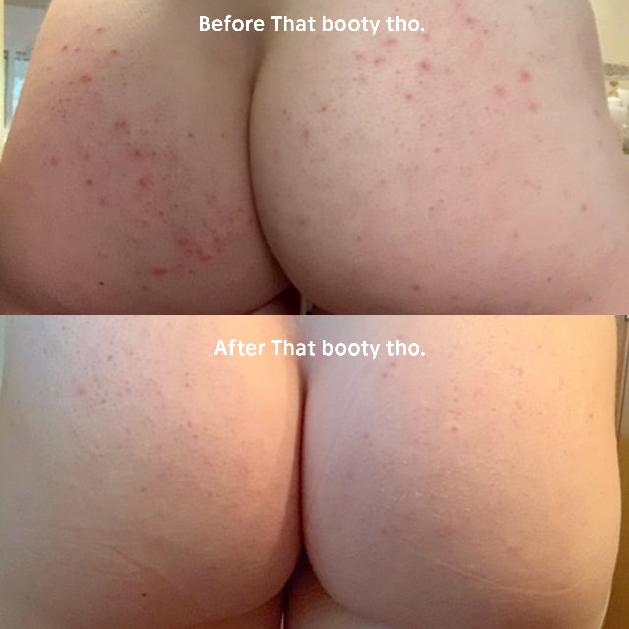 Persistent body acne is usually caused by clogged pores, sweat, friction, and bacteria—especially from sitting, workouts, and tight clothing. Anese products are designed to unclog pores, reduce buildup, and keep skin clear with consistent use. Many customers see texture improve first, followed by fewer breakouts over time.