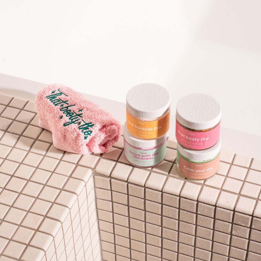 We focus on targeted treatments for areas often ignored—like butt acne, ingrown hairs, and stretch marks—using fun, effective, clean formulas that actually work.
